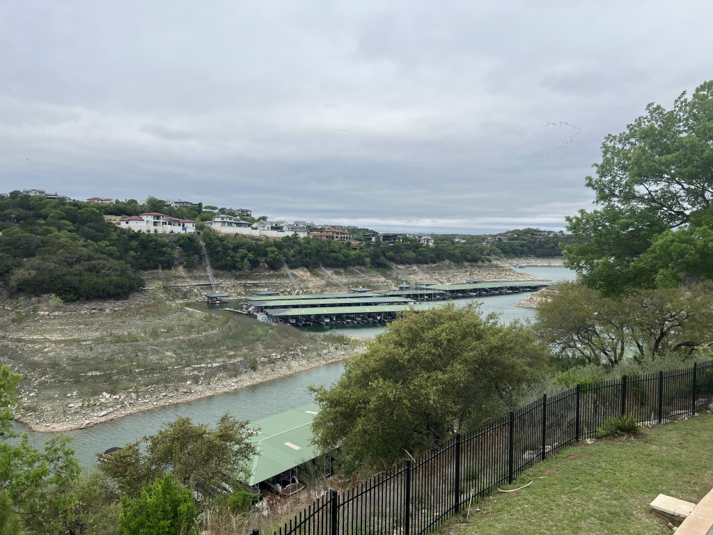 The outdoor patio overlooks Lake Travis in a way that feels almost painterly, like a scene you don’t want to leave.