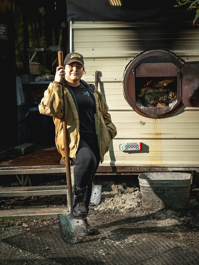 She became legendary as the lady pitmaster who ran the pit fires entirely solo at night, starting at midnight.