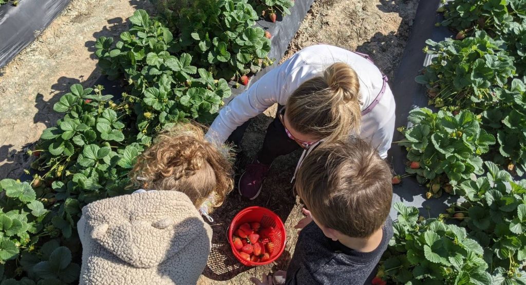 There is something about walking a row of aromatic strawberry plants in the morning light that does not cooperate with hurrying. The kids will not hurry. Here’s your chance to get your family off their screens. A ripe strawberry has powers. Maybe that little girl was right; they are magical!