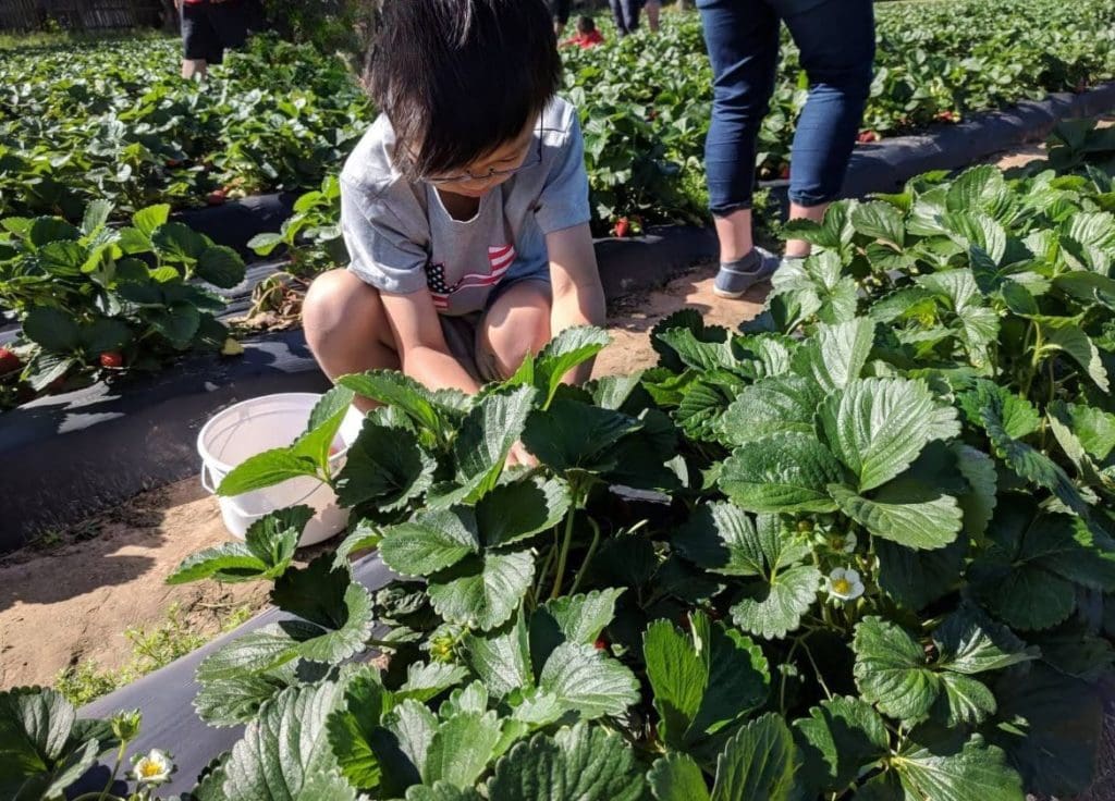 For a few hours, families slow down, crouch low to the earth, and get completely pulled into something simple and rare in an urban setting. The focus is on those strawberry rows, growing low and intensely green. In season, they are crawling with clumps of families, chatting and laughing as they crawl through them filling their bucket with the fattest, ripest berries.