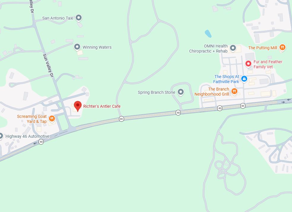 You’ve arrived at Richter’s Antler Cafe in Spring Branch, Texas.