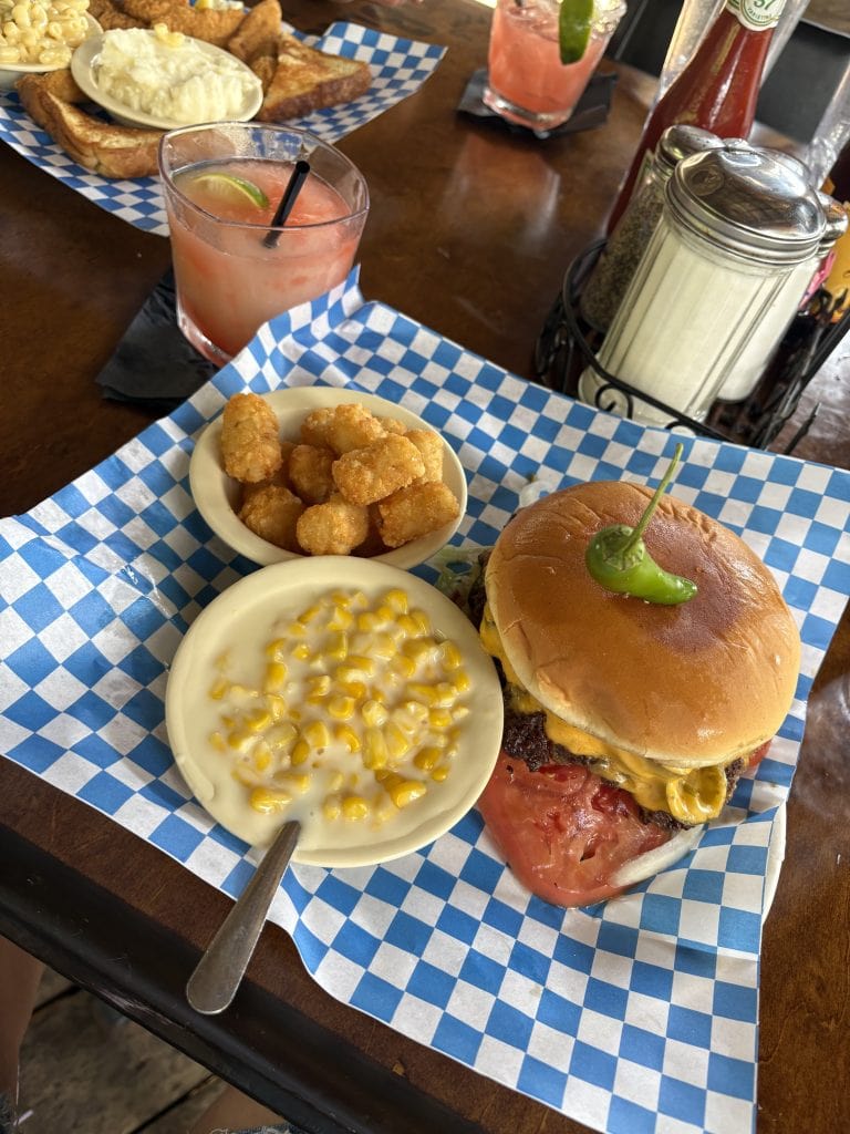 Burgers come stacked and unapologetic, landing around the $9 to $12 range, tall enough that you’re already planning your first bite before you even pick it up, knowing it’s going to be messy, knowing you don’t care.