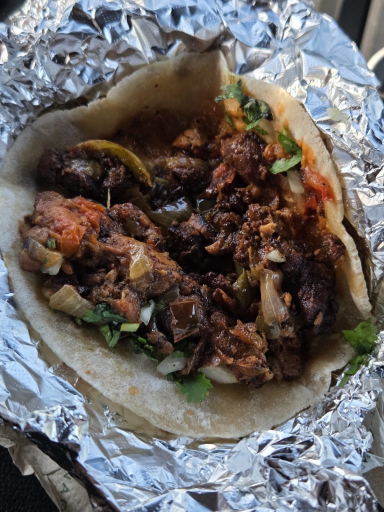 They’re cooked in the style of Mexican street tacos. If that’s your favorite food, this is the spot for you!