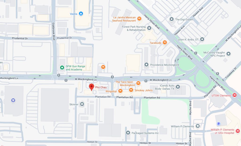 Pho Chau occupies a modest spot in a small strip center at 1640 W Mockingbird Lane, tucked between a Subway and an old-school Italian restaurant.