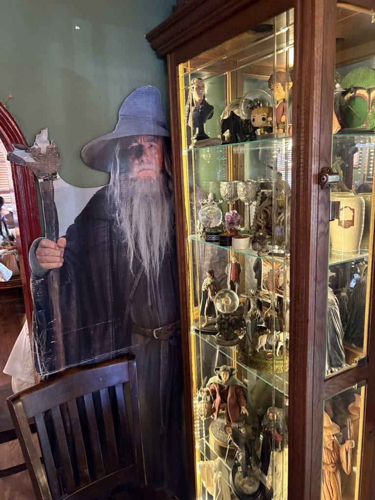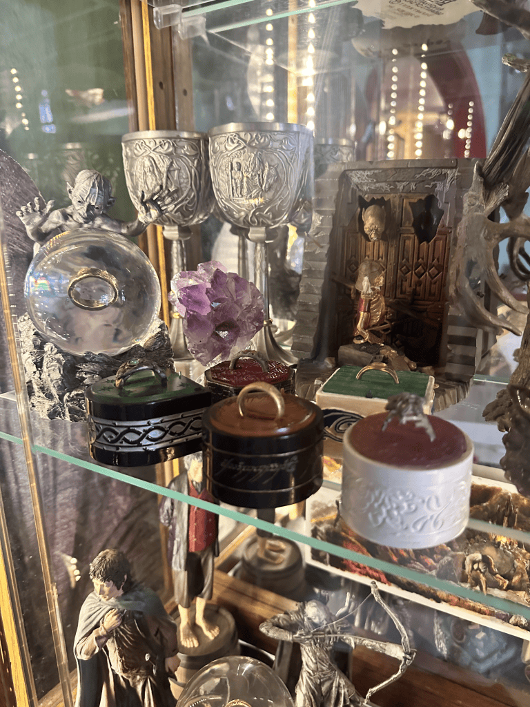Glass Case of LOTR Memorabilia inside the Hobbit Cafe (Photo Credit: Naomi)