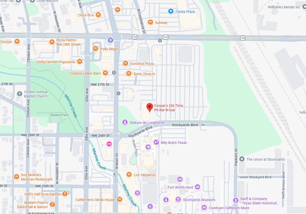 This location of Cooper’s is near the famous Fort Worth Stockyards.