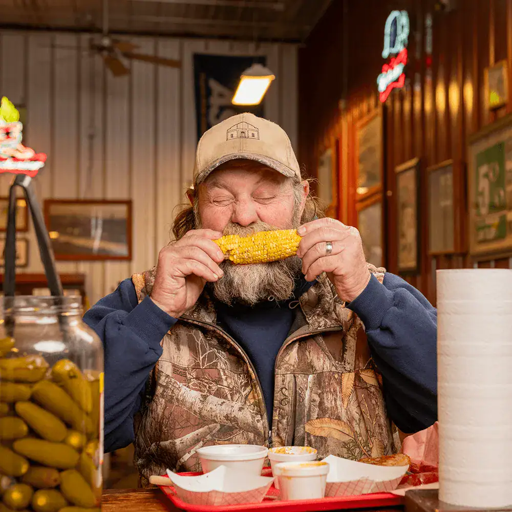 Sides at Cooper’s include potato salad, coleslaw, grilled corn, steamed corn, and green beans.