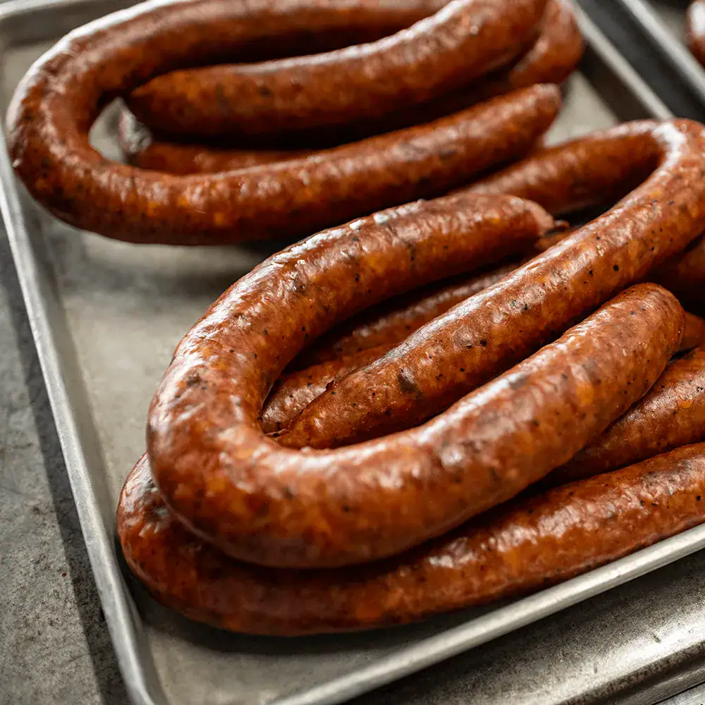 At Cooper’s, you’ll have your pick of beef ribs, brisket, regular sausages, jalapeno cheddar sausages, chicken, ribeyes, and sirloin.
