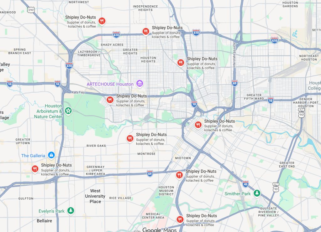 For the full Houston experience, you can visit any of the approximately 86 Shipley locations in the Houston metro area.