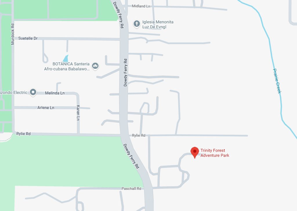 Use the map to explore the Great Trinity Forest area and the nearby Trinity River green spaces that surround this elevated adventure park.