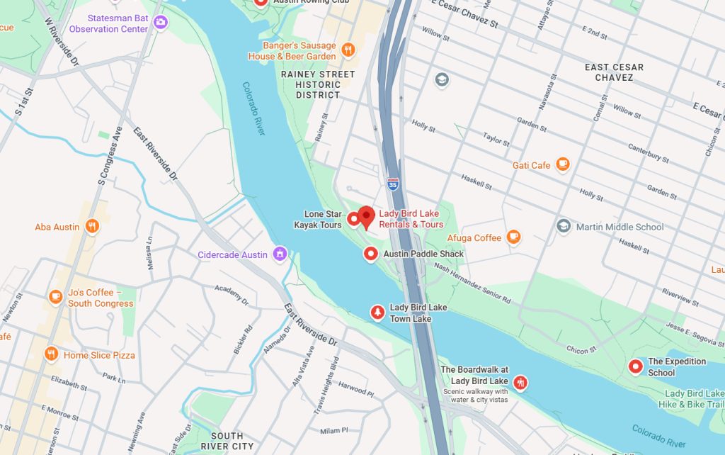 The lake sits just south of the central business district, meaning paddlers can stroke past views of the Texas State Capitol dome and Austin’s growing skyline without ever leaving the water.