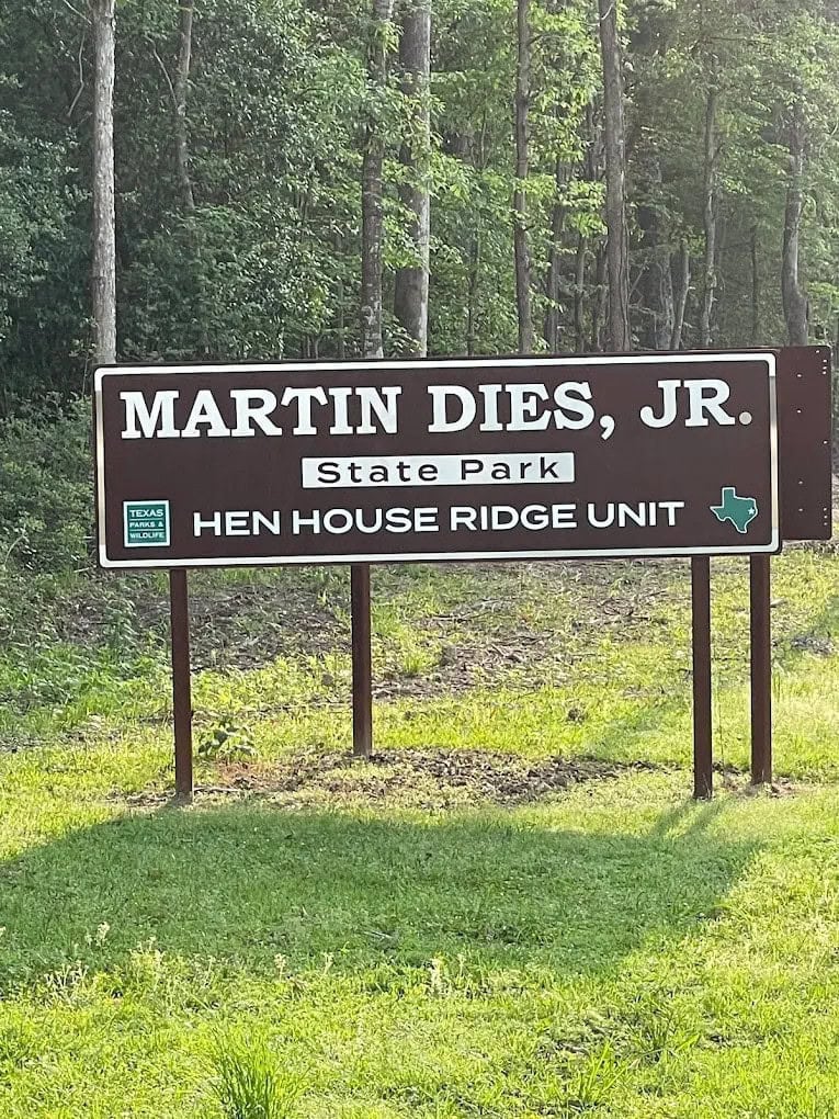 The signage for Martin Dies Jr. State Park welcomes visitors to this nature‑filled retreat. (Photo Credit: Yiyis PP)