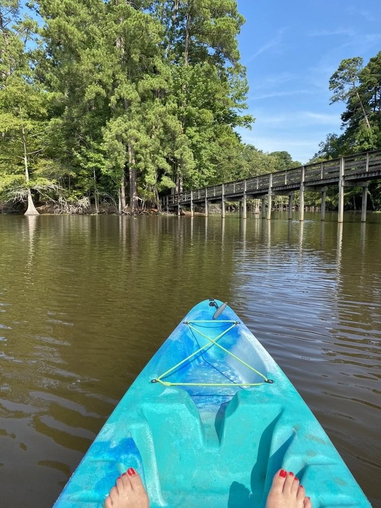 POV shot of kayaking in the park’s 14‑mile trail captures the peaceful beauty of the water. Credit: Eunji K.