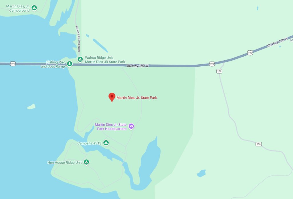 Martin Dies, Jr. State Park is located along U.S. Route 190 in Jasper and Tyler counties. You can use the map below to navigate to the Martin Dies, Jr. State Park Headquarters. You’ll find easy access to the Forest Trailhead from Park HQ.