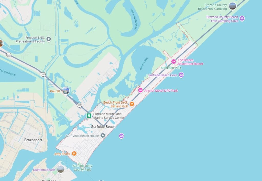 What’s the best way to get to this beach? Plug Surfside Beach, Texas, in your Maps app.