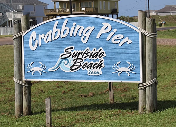 Surfside Beach has a Crabbing Pier, with a sign and everything. It’s across the highway from Stahlman Park at 2211 Bluewater Highway.