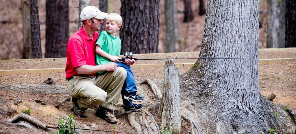 Hike where sunlight dapples your clothes and hiking boots. Fish with your back up against a tall pine on the bank. Camp beneath stars and trees rustling at night.