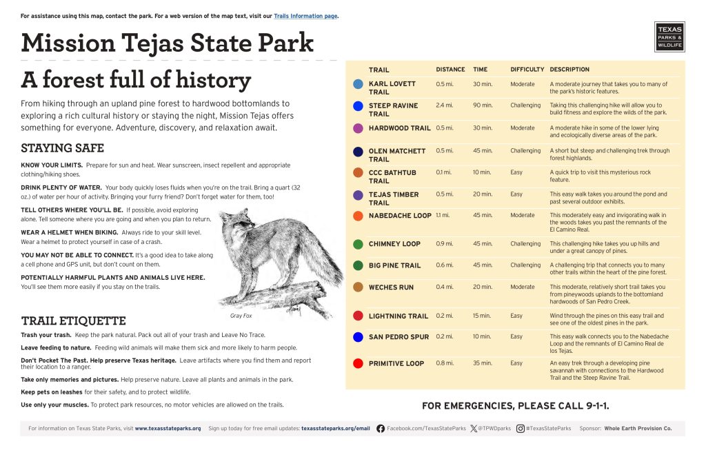 Where’s the park located? Type Mission Tejas State Park into your Maps app.
