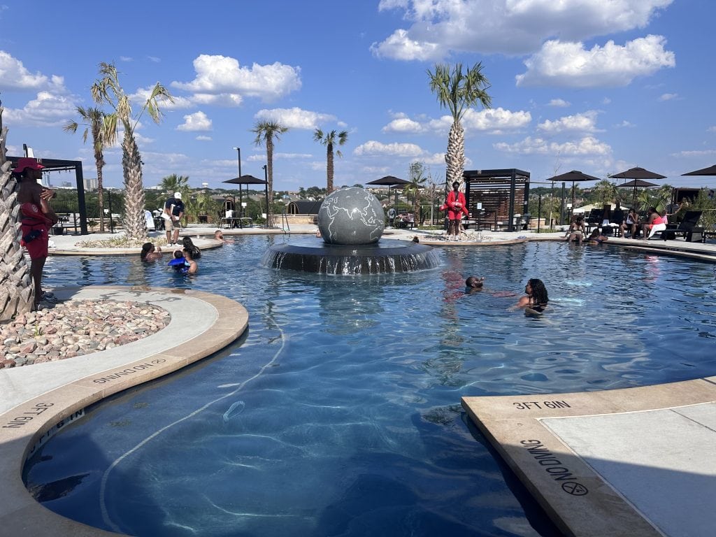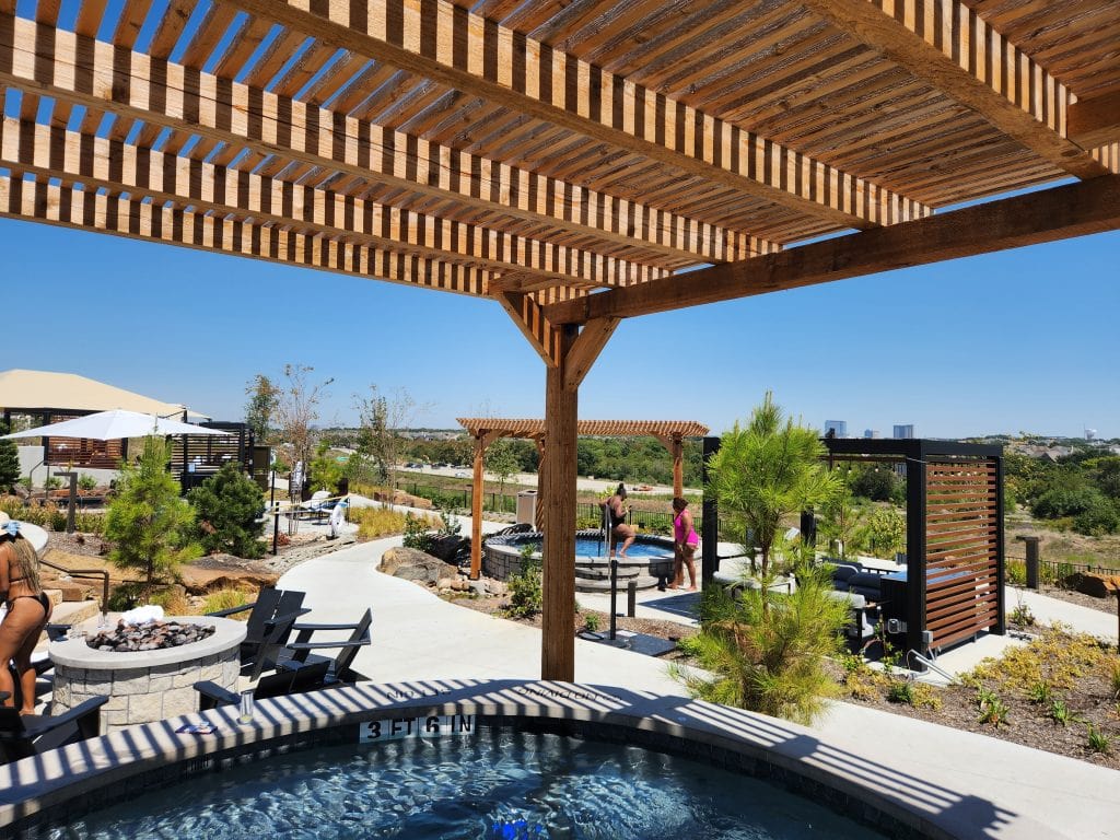 You’re outdoors, with an open Texas sky above you, and that familiar backdrop keeps it grounded, even as you’re switching between spaces inspired by other parts of the world.