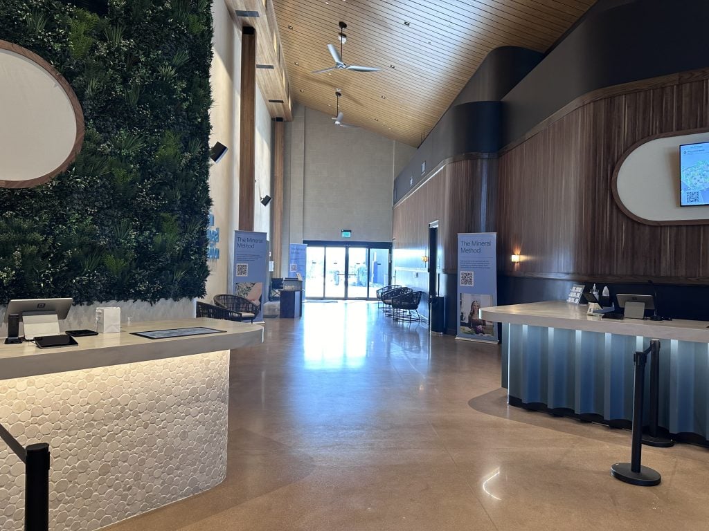 WorldSprings also has hydration stations with infused water — worth stopping at between soaks.