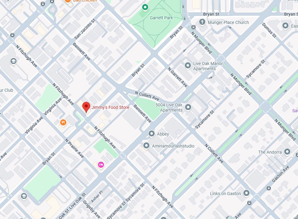 Sure! Jimmy’s Food Store is an Italian grocery store on the east side of Dallas, as you’re on your way to northeast Dallas and the arboretum.