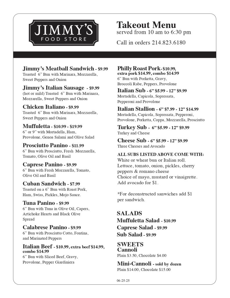 That’s right! Beyond serving customers as a grocery store, Jimmy’s has sandwiches and a deli from which you can order, pick up, and savor.