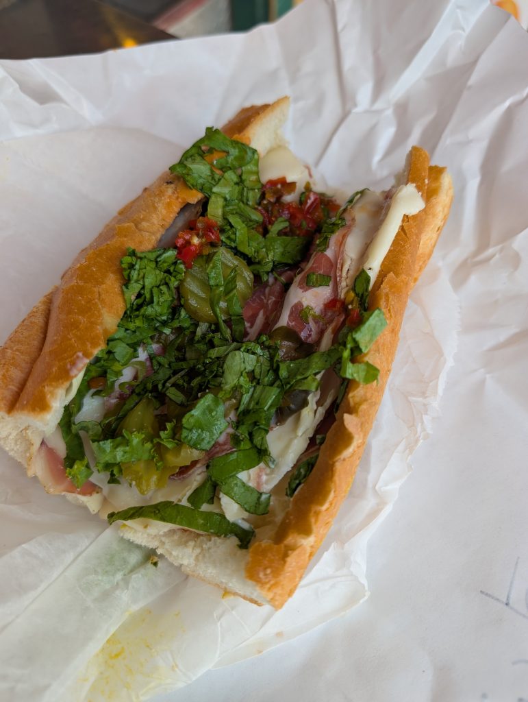 Out of a long list of sandwiches on the menu, my go-to choice is the Turkey Sub. It’s a plain turkey-and-cheese option, but all sandwiches come with lettuce, tomato, onion, pickles, cherry peppers, and romano cheese, plus your choice of mayo, mustard, or vinaigrette.