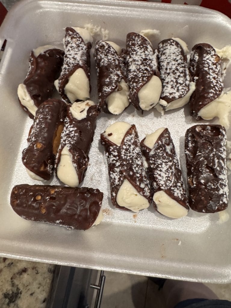 If you have a sweet tooth, order a plain or chocolate cannoli ($4), or by the dozen ($15), if you’re in a sharing mood.