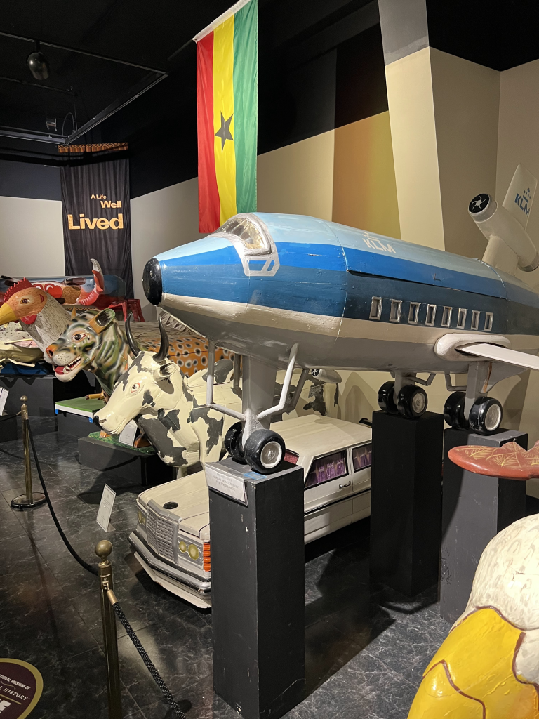 One of the most visually stunning exhibits focuses on fantasy coffins from Ghana.