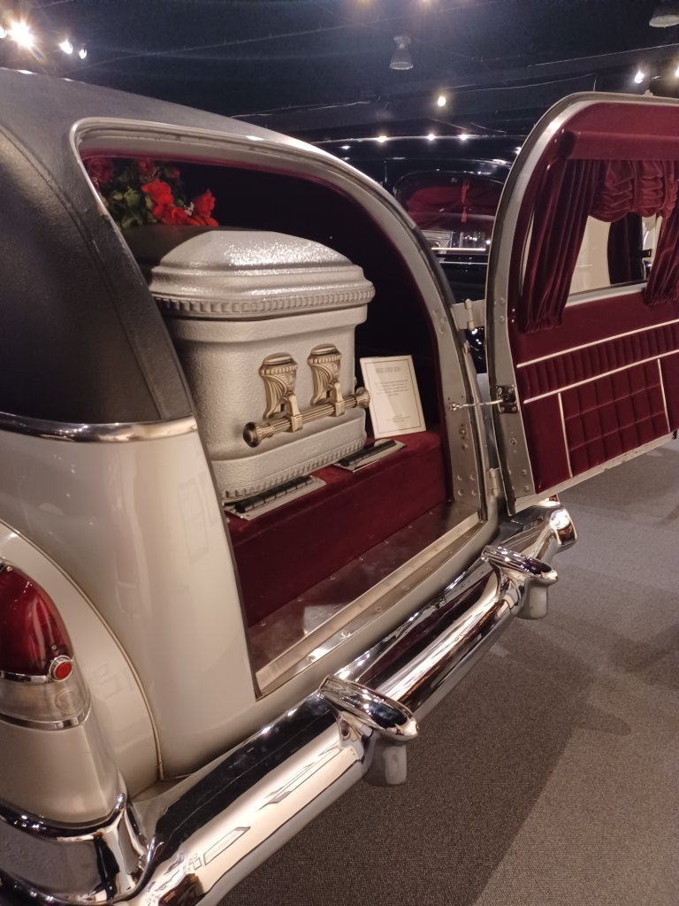 The Museum’s collection of rare funeral service vehicles traces the evolution of funerary tradition. The time frame ranges from horse-drawn funeral carriages of the 19th century to the actual hearses used in the funeral of Grace Kelly and the state funeral services of U.S. Presidents Ronald Reagan and Gerald R. Ford.