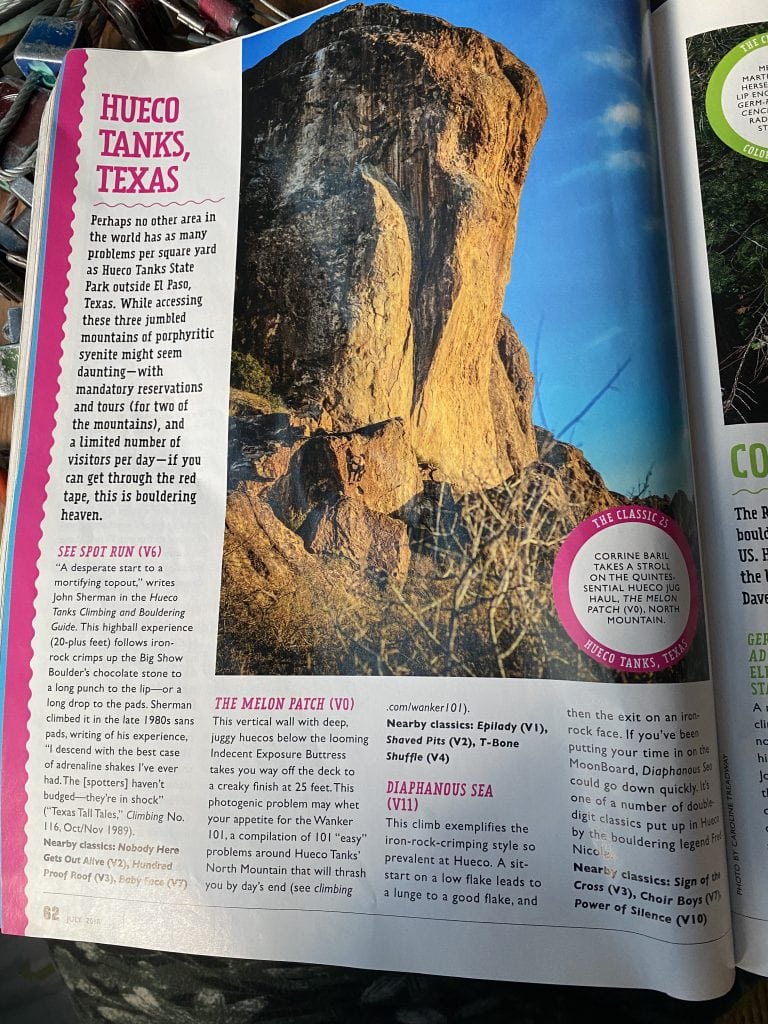 But it’s deeper than that. Hueco is a contender for the birthplace of modern bouldering. This kicked off in 1980, building to a climax in the early 2000’s, before the more recent restrictions slowed things down.